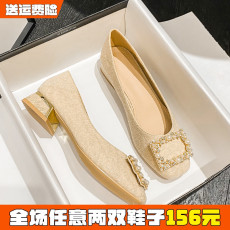 女鞋2024新款秋季单鞋韩版百搭粗跟秋鞋仙女中跟尖头伴娘时尚浅口