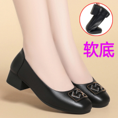 真牛皮粗跟单鞋女2025新款平底中跟小皮鞋妈妈百搭软底职业女鞋