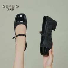 大东法式单鞋女秋季2025新款新中式百搭女鞋方头粗跟中跟玛丽珍鞋