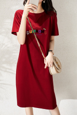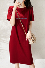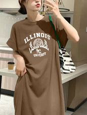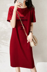 短袖T恤裙女2025夏季新款宽松休闲中长款字母印花过膝套头连衣裙