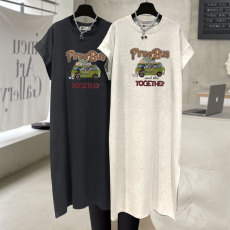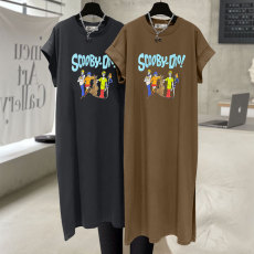短袖t恤女中长款裙子2025年新款夏季美式复古卡通字母宽松连衣裙