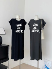 休闲短袖t恤女中长款裙子2025年新款夏季美式简约字母宽松连衣裙