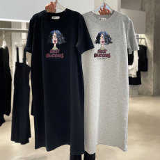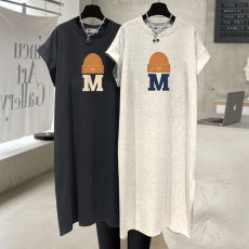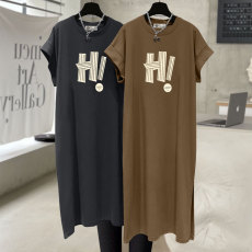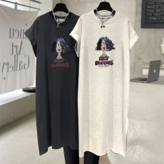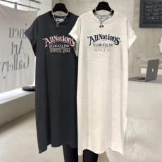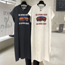 休闲短袖t恤女中长款2025新款夏季字母欧货大版宽松连衣裙长裙子