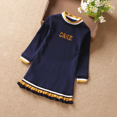 依依妈儿童字母印花中长款打底衫春季女童韩版T恤裙洋气开叉裙T恤