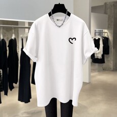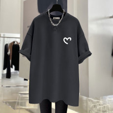 休闲爱心字母中长款纯棉短袖T恤女潮2025春夏宽松遮屁股下衣失踪