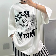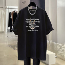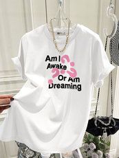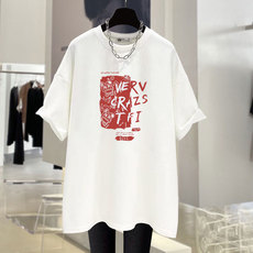 字母上衣短袖T恤女2025春夏印花宽松纯棉中长款遮屁股下衣失踪潮