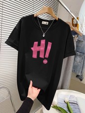春秋韩版2024新款宽松中长款字母印花下衣失踪情侣短袖T恤上衣女