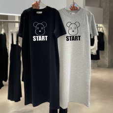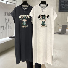 休闲短袖t恤女裙子2025新款夏季韩版卡通熊字母宽松连衣裙中长款