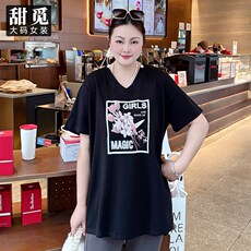 甜觅特大码女装2025夏季胖mm300斤字母花朵印花中长款宽松棉T恤DF
