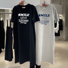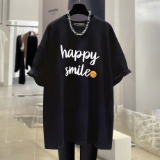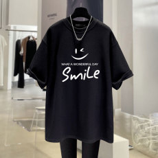 时尚笑脸字母中长款纯棉短袖T恤女潮2025春夏宽松遮屁股下衣失踪