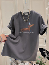 可爱小狗字母中长款纯棉圆领短袖T恤女潮2025春夏宽松遮屁股欧货