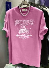 美式复古机车兔子字母中长款纯棉圆领短袖T恤女潮2025春夏宽松潮
