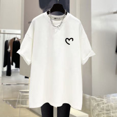 2025夏季新款欧洲站字母爱心纯棉宽松显瘦中长款潮牌圆领T恤女ins