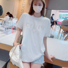 欧美2025夏新款字母烫钻印花宽松休闲中长款棉短袖上衣白T恤女