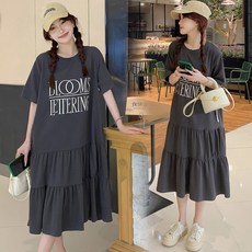 孕妇夏装短袖连衣裙2024新款韩版宽松印花字母拼接中长款T恤裙女
