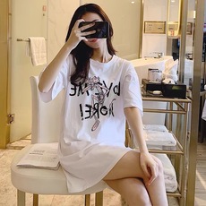 夏季短袖连衣裙中长款学生睡衣T恤女睡裙ins韩版字母可外穿家居服