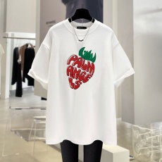 字母草莓设计感短袖T恤女2025夏季印花宽松纯棉中长款遮屁股下衣