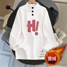 2025新款德绒T恤中长款圆领宽松字母印花时尚加厚长袖保暖上衣女