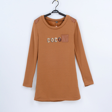 春秋季韩版女装加绒加厚打底衫中长款长袖T恤字母宽松上衣百搭潮
