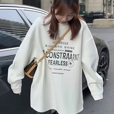 美式字母印花卫衣女新款秋冬加厚保暖圆领长袖中长款T恤宽松上衣