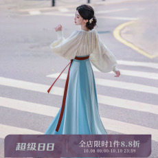 拟梦雨后彩虹原创国风衬衫鸡心领唐制汉服间色破裙简约日常大放量