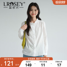 【全棉木耳边白色衬衫】蓝若水大码2025新款胖MM秋装立领通勤衬衣