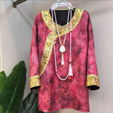 新中式大码女装2025秋季新款国风高品质锦缎提花拼接长袖衬衫上衣