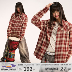 江南先生NewJNXS珍珠logo点缀格纹复古衬衫秋钉珠宽松百搭外套