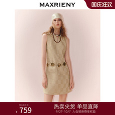 MAXRIENY轻奢名媛花纱连衣裙2025秋款miu系千金小香风无袖中长裙