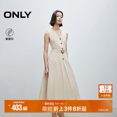 ONLY2025夏季新款利落V领精致琥珀纹扣收腰无袖中长裙连衣裙女