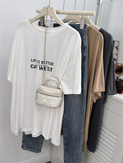2024夏季新款韩版字母印花短袖t恤女大码女装宽松显瘦中长款上衣
