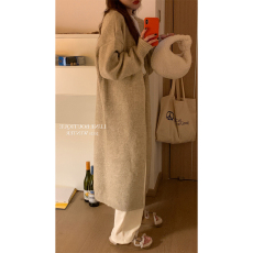 仿水貂绒气质中长款过膝毛衣开衫女秋冬新款慵懒风宽松厚针织