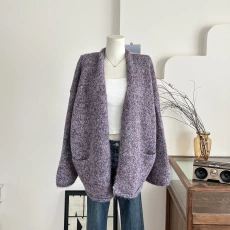 高级感毛衣外套女中长款慵懒风宽松软糯温柔风秋季灯笼袖针织开衫