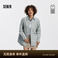 森马长袖衬衫女中长款慵懒宽松落肩休闲秋季chic复古格纹衬衣潮流