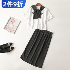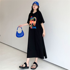 夏装韩版胖妹妹过膝短袖女中长款慵懒人宽松大码t恤女连衣裙200斤