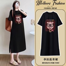 孕妇连衣裙2025新款夏季黑色卡通短袖薄款时尚宽松中长款T恤裙女