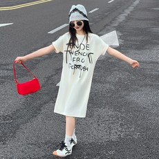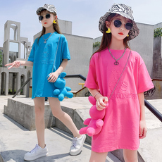 女童短袖T恤连衣裙夏季潮儿童大童网红炸街纯棉上衣中长款T裙洋气