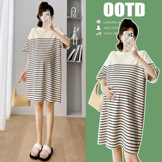 2023夏装新款孕妇装时尚短袖条纹t恤裙韩版中长款宽松显瘦上衣女