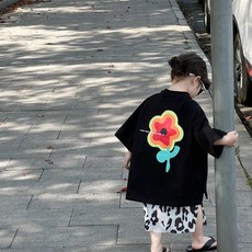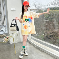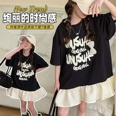 女童t恤裙儿童裙子中长款短袖童装新款洋气时髦夏装宽松韩国上衣