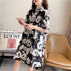 胖MM夏季女T恤薄款卡通原宿风大码懒人裙中长款宽松显瘦短袖裙子