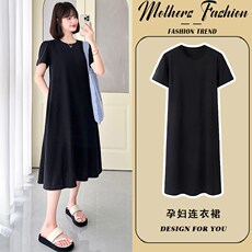 孕妇连衣裙2025新款夏季黑色短袖薄款时尚宽松显瘦中长款T恤裙女