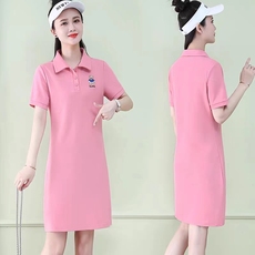 小熊polo连衣裙女2025夏季新款休闲裙子宽松显瘦中长款短袖t恤裙