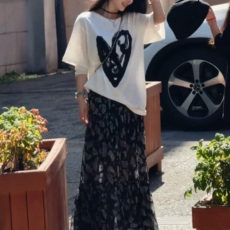 wildrooms2025新款短袖中长款T恤裙女士夏字母刺绣宽松百搭上衣