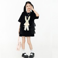 亲子款黑超奶嘴童装日系女宝宝中长款短袖T恤儿童夏季宽松连身裙