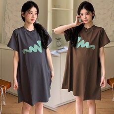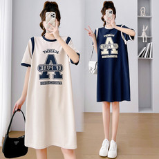 孕妇夏装短袖连衣裙2024新款韩版宽松印花字母拼接中长款T恤裙女