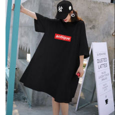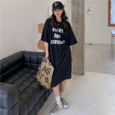字母短袖t恤女中长款裙子2025年新款夏季韩版港风潮牌宽松连衣裙