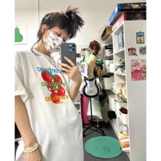 中长款体恤夏季新款大码女装宽松网红超火cec短袖t恤裙女ins上衣