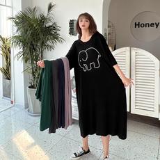 特大码女装胖MM300斤宽松中长款连衣裙夏装新款240斤260短袖T恤女
