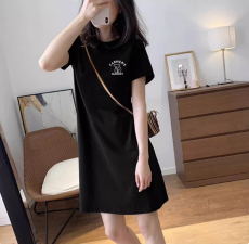黑色连衣裙女春夏新款宽松显瘦中长款简约印花短袖T恤裙ins潮