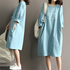 纯棉圆领短袖t恤裙子女韩版宽松大码中长款连衣裙过膝长裙夏季潮